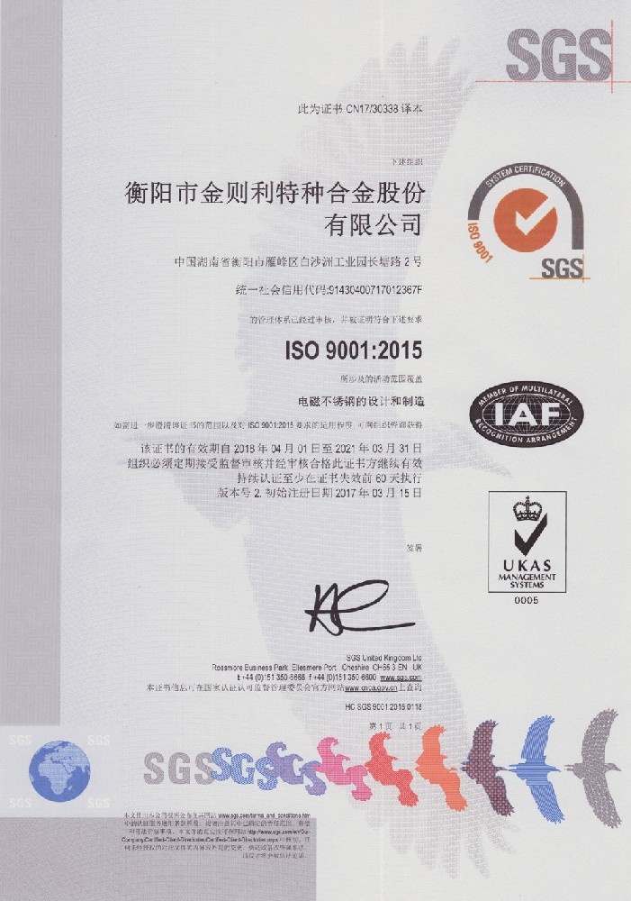 衡陽市金則利特種合金股份有限公司成立于一九九九年十二月,注冊資本人民幣兩千兩百萬元。注冊地址:衡陽市雁峰區(qū)白沙洲工業(yè)園長塘路2號(hào)。公司主營耐蝕軟磁合金,為湖南省高新技術(shù)企業(yè)。公司自成立以來,即致力于耐蝕軟磁合金的研發(fā)。 研制出的JL-31(00Cr13si2Pb)、JL-31B(00Cr13si2)、JL-31BS(00Cr13Si2S)、JL-37B(0Cr17Si2)、JL-37(0Cr17···